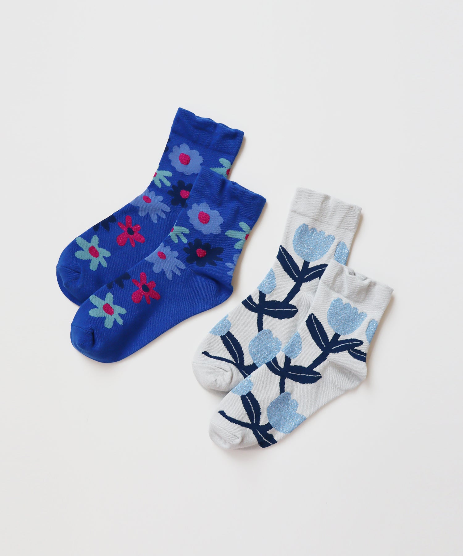 フラワーガーデンをイメージした、花柄の2足組ソックス。