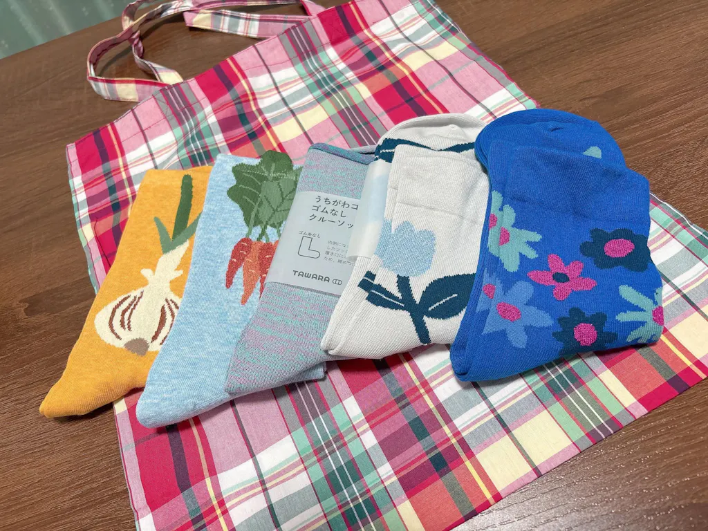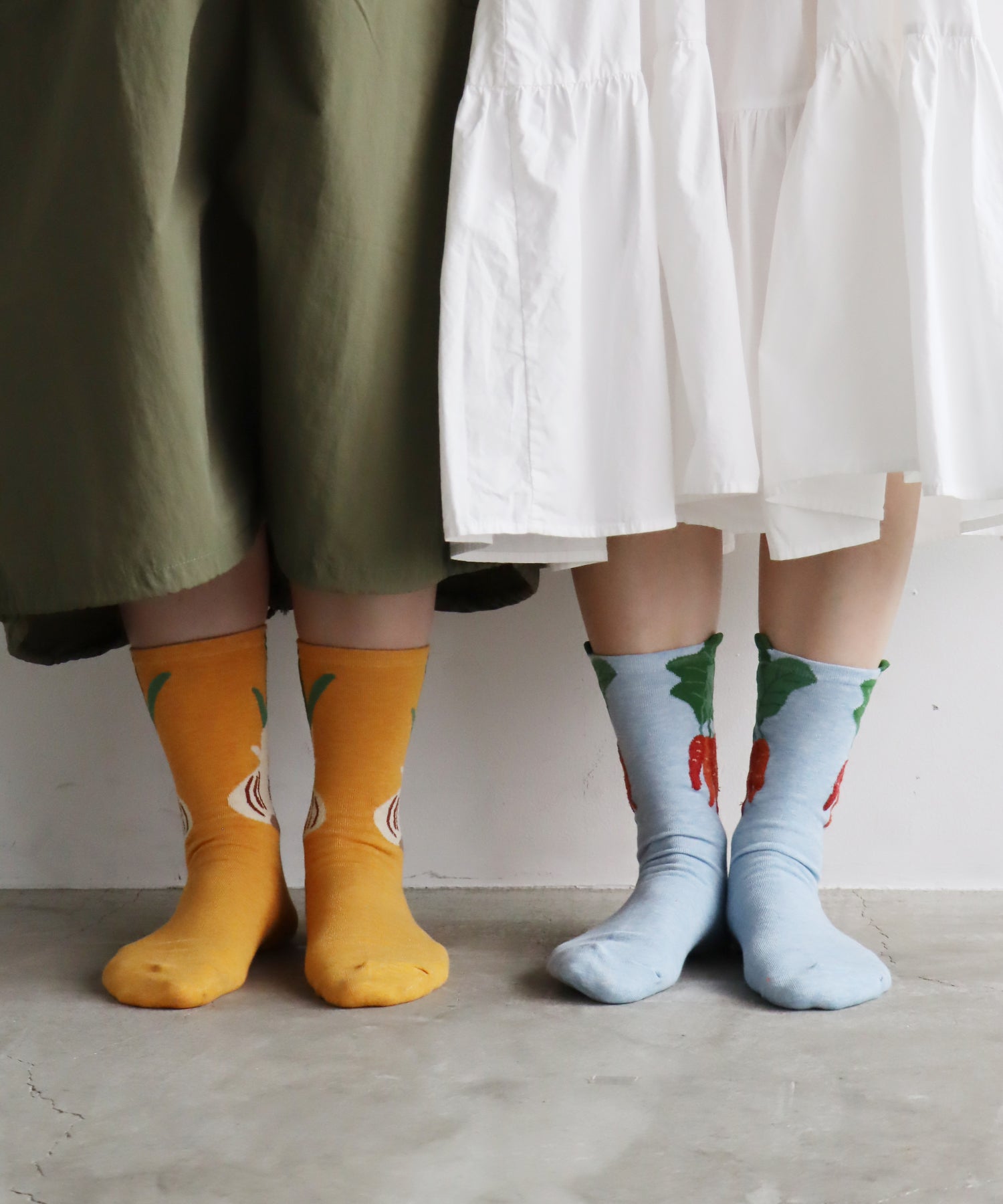 玉ねぎとニンジンをモチーフにした、2足組ソックス。