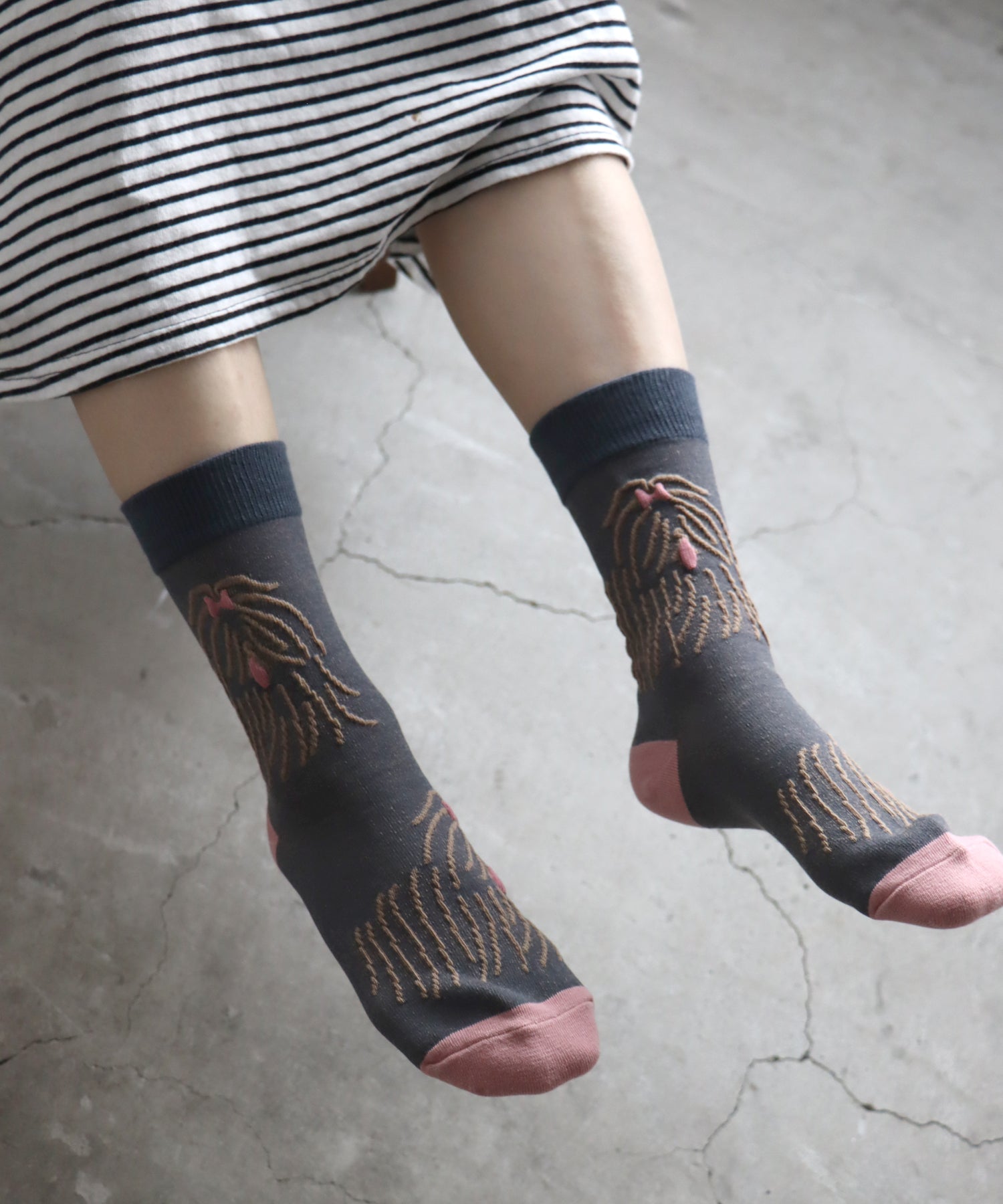〈TIME SALE〉【2足組】ドローイングドッグ クルーソックス