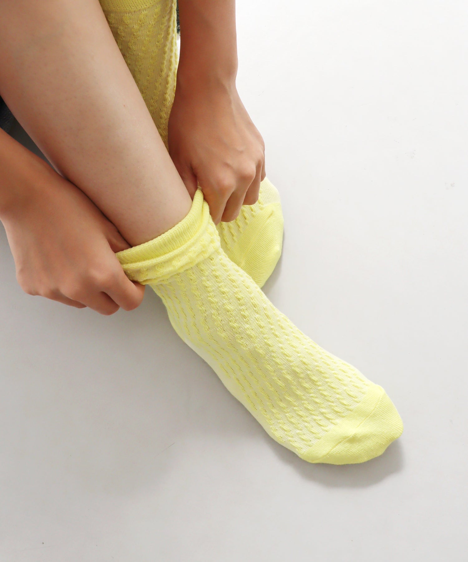 スニーカーに合わせてちらりとのぞかせたり、