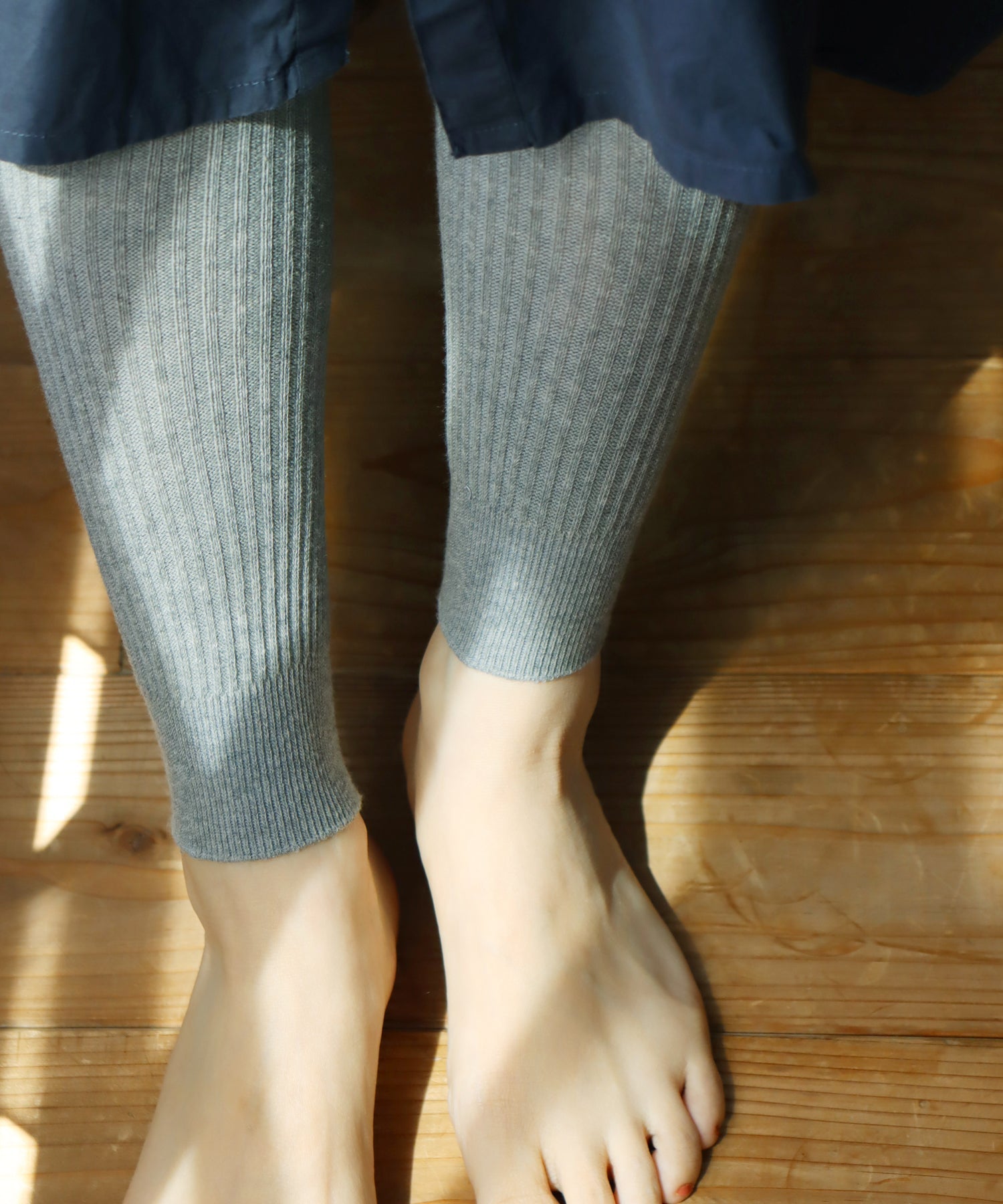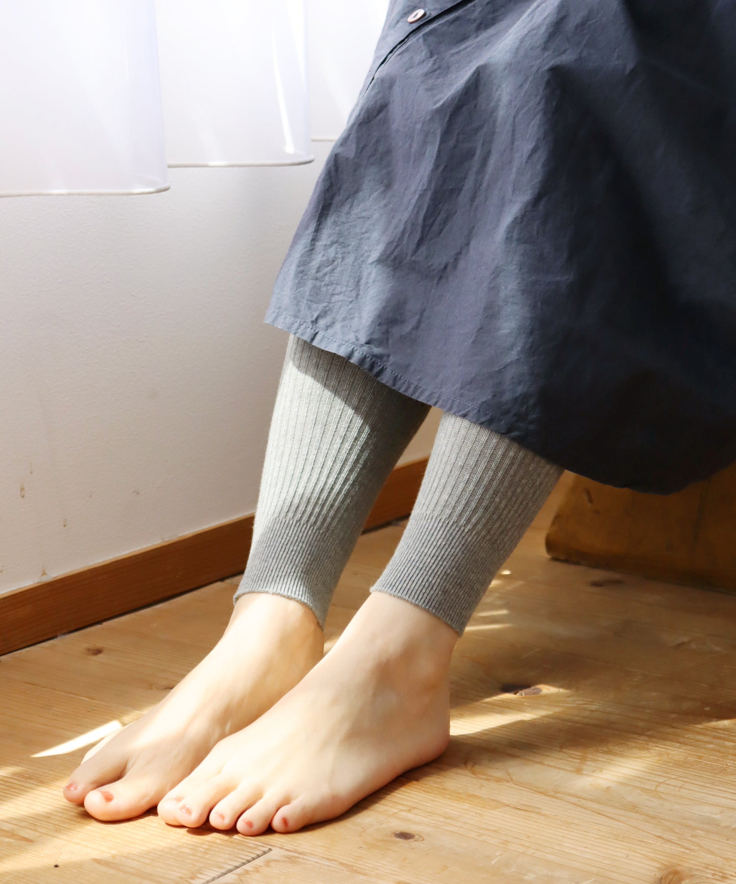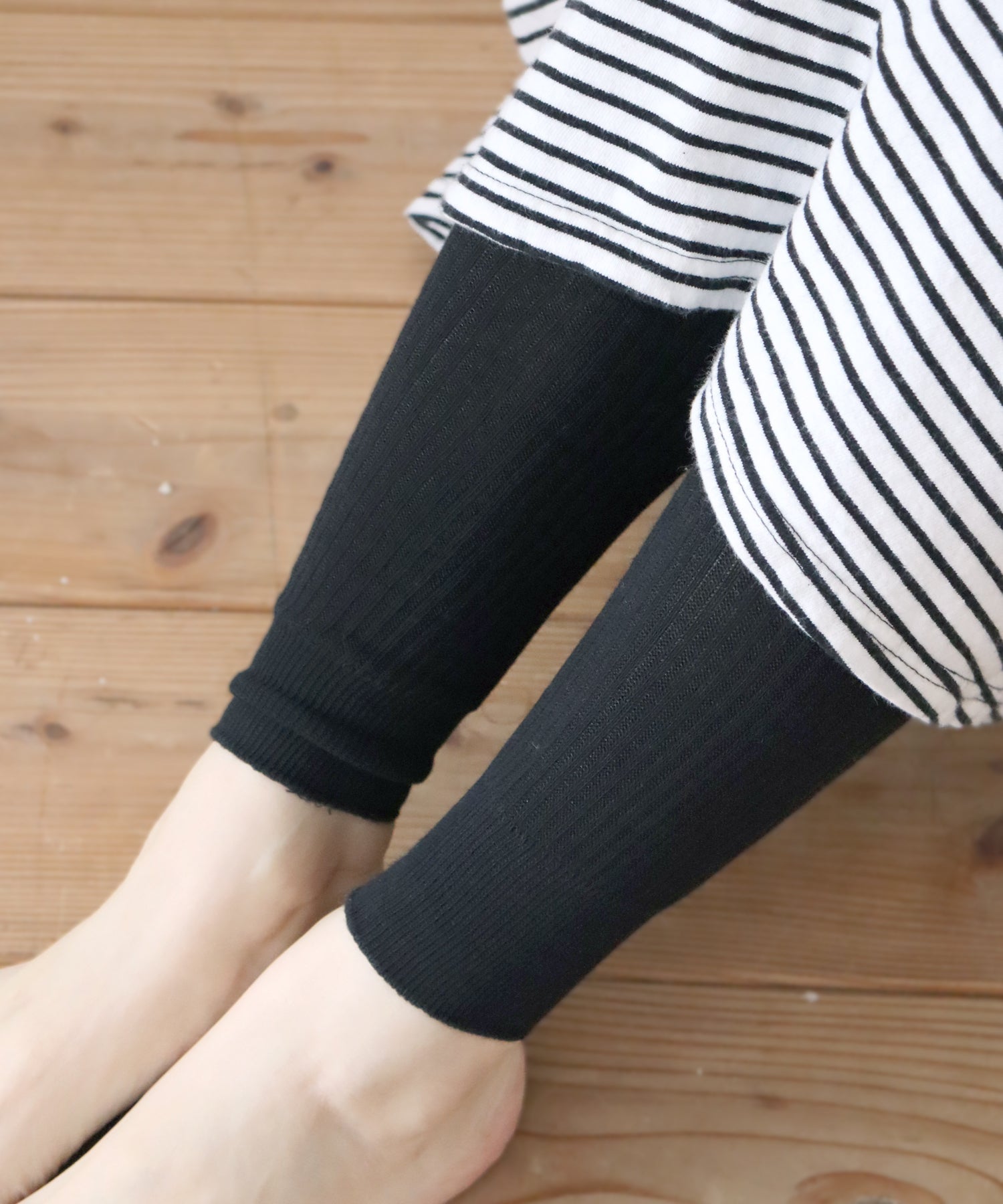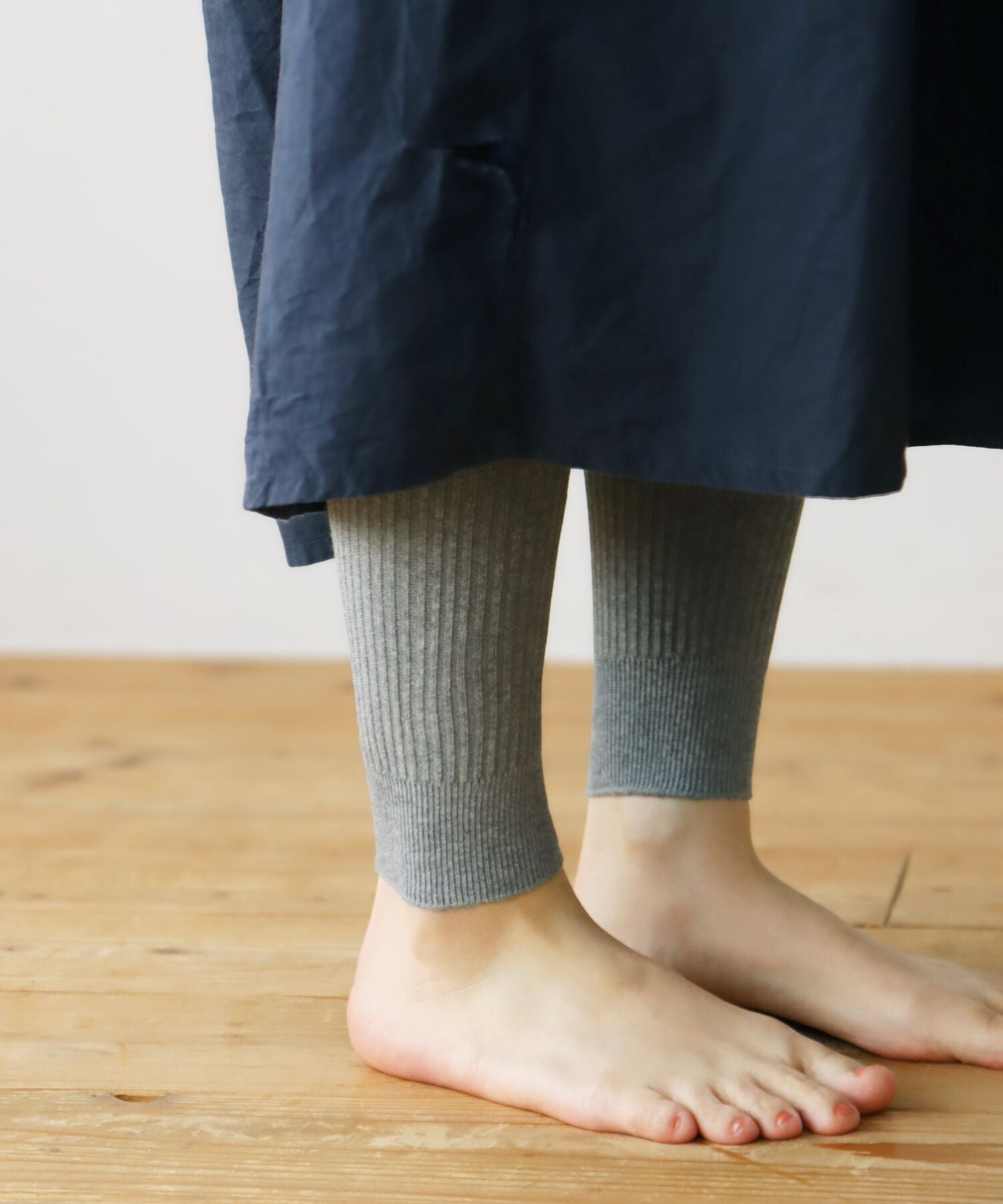 よく伸びて身体にフィットする、綿糸をたっぷり使用した柔らかなリブレギンスです。肌ざわりもよく、厚みは中肉厚なので年間を通してご着用いただけます。