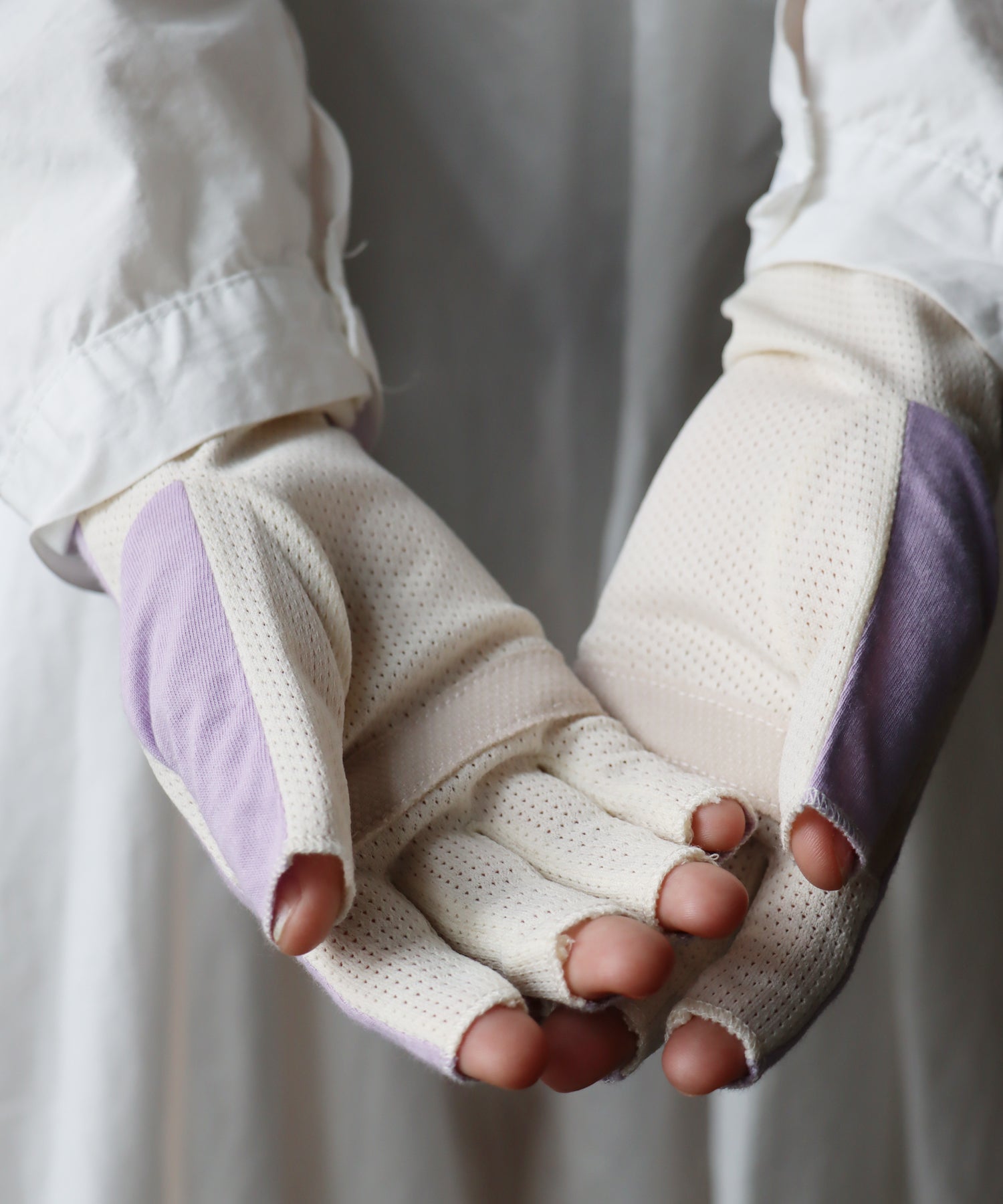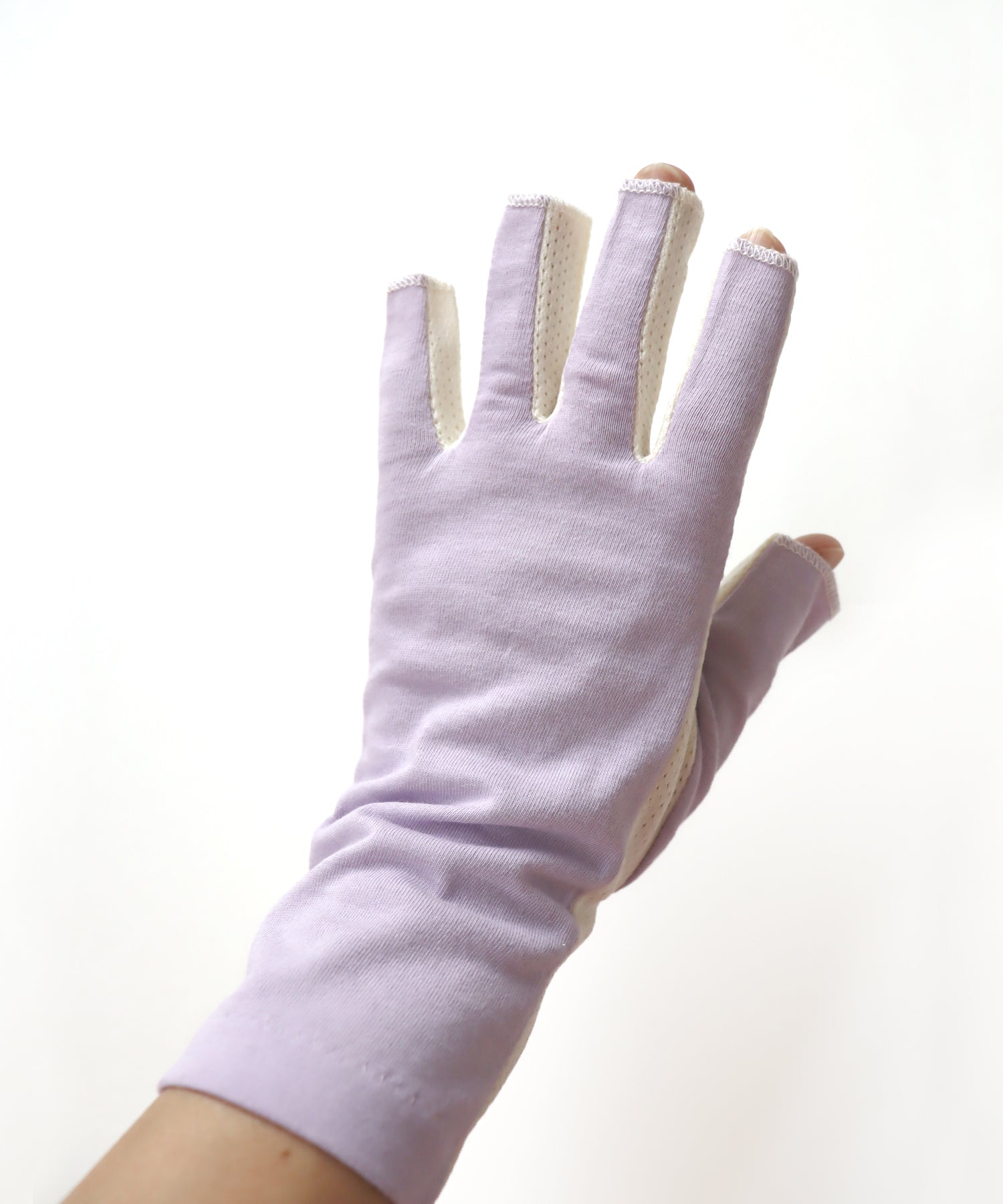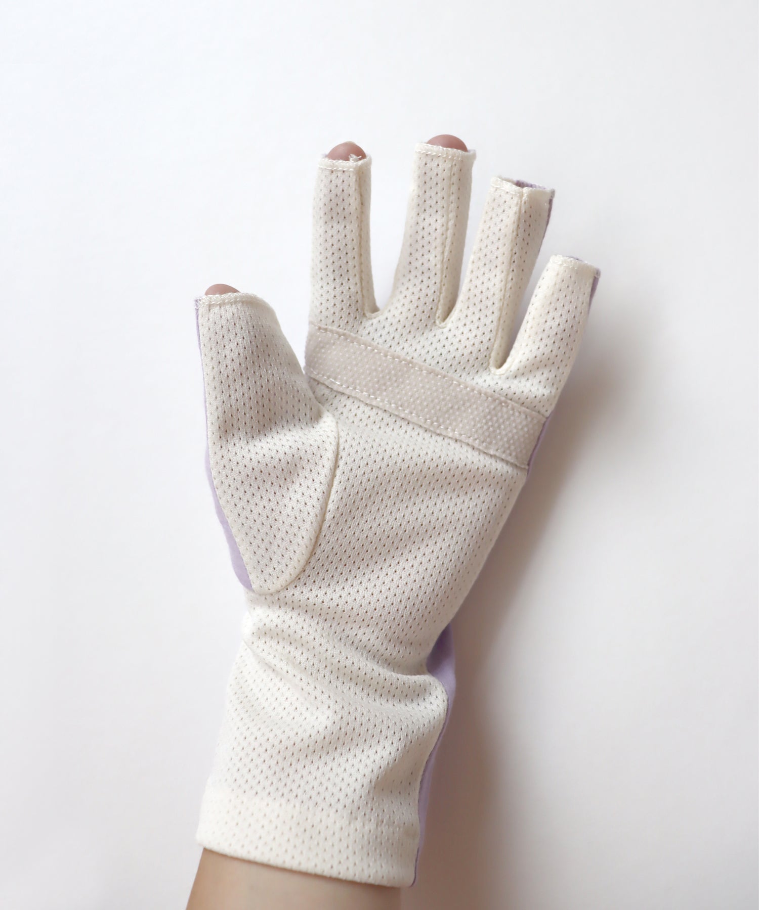 甲側はやわらかな天竺素材で、しっかり紫外線対策。