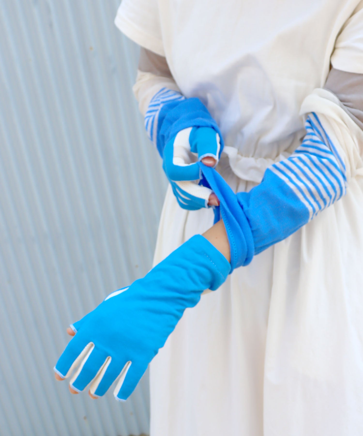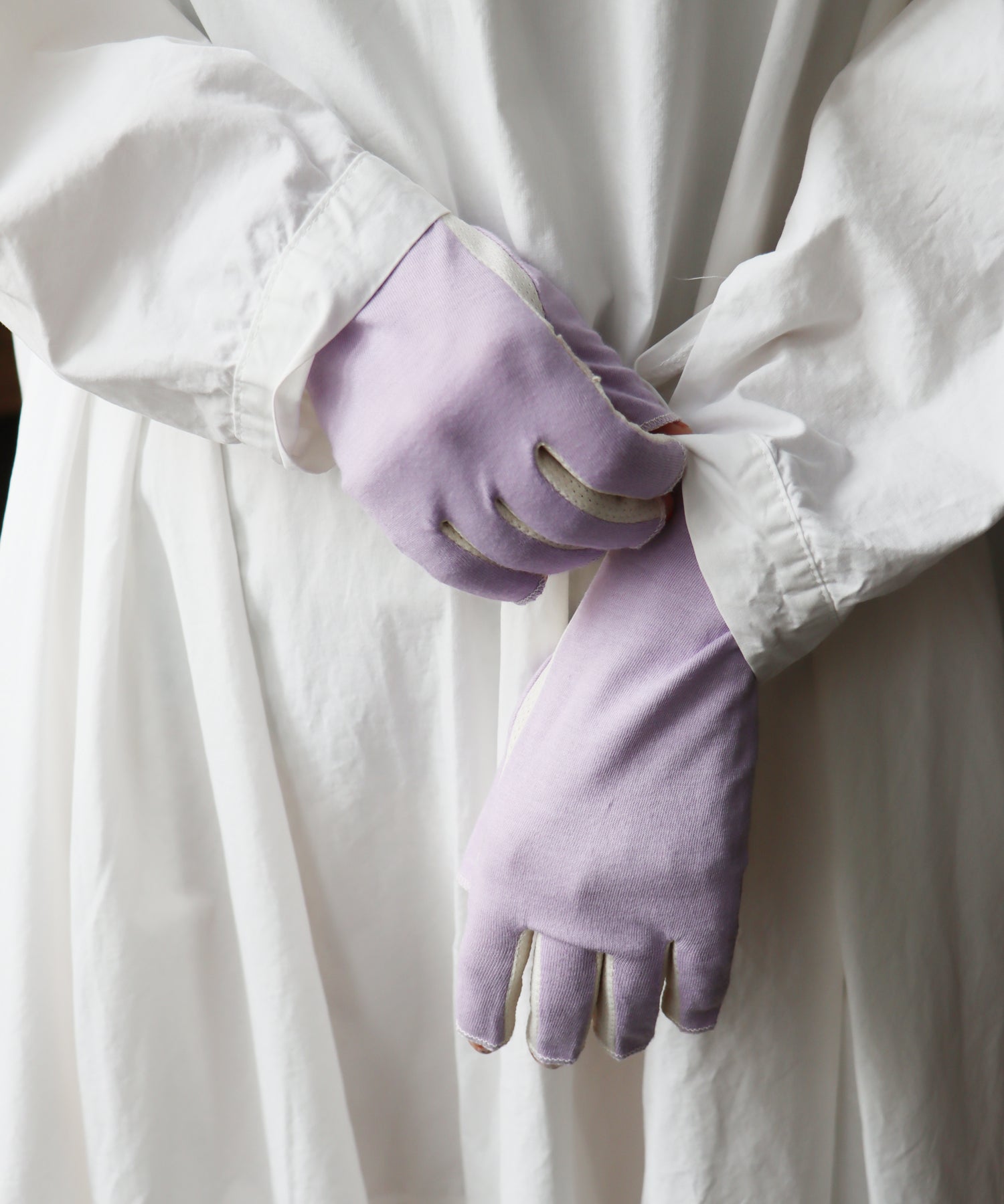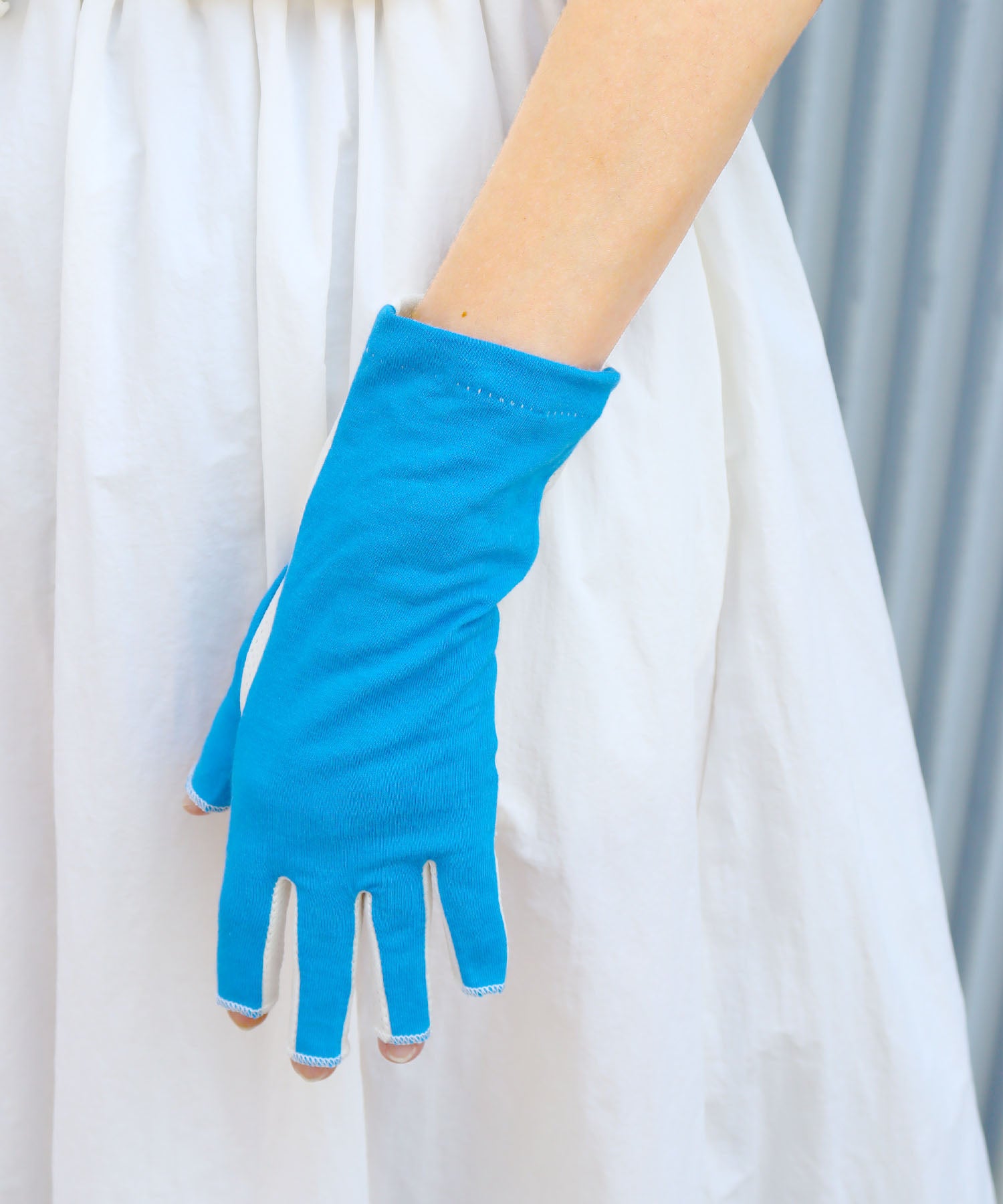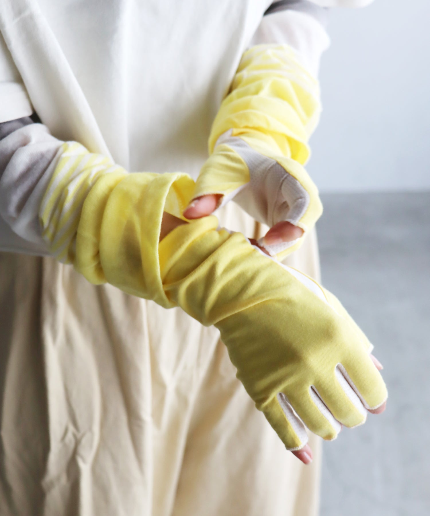 甲側はやわらかな天竺素材で、しっかり紫外線対策。