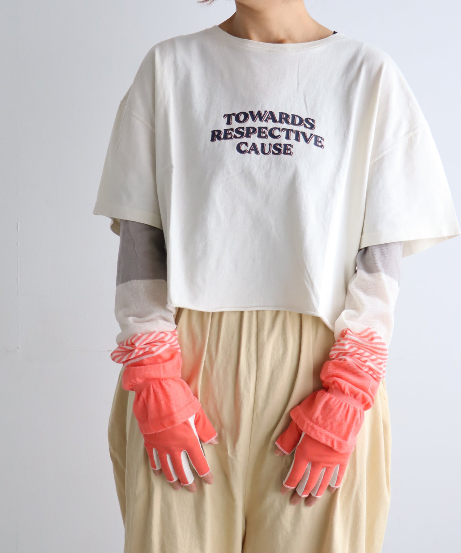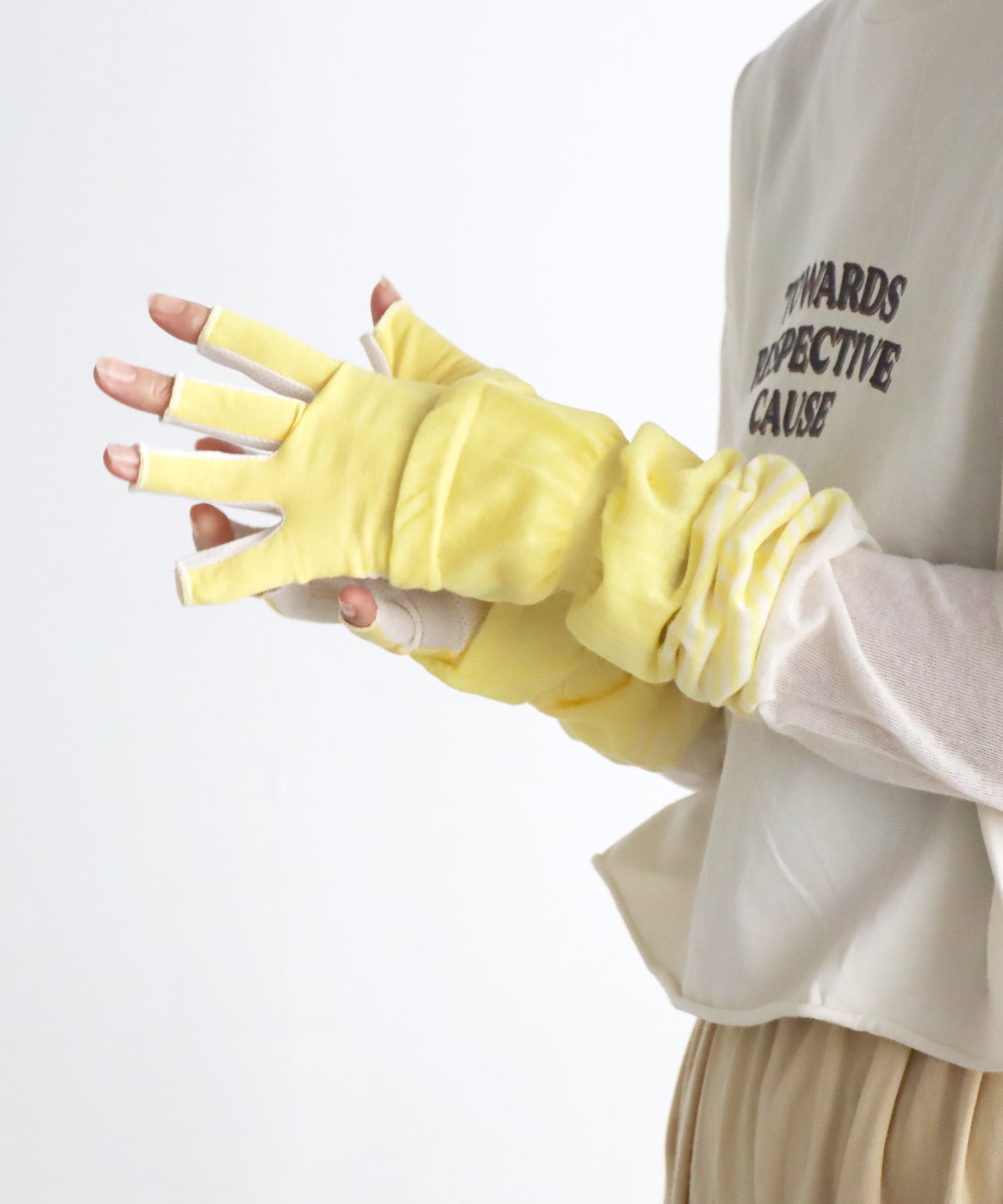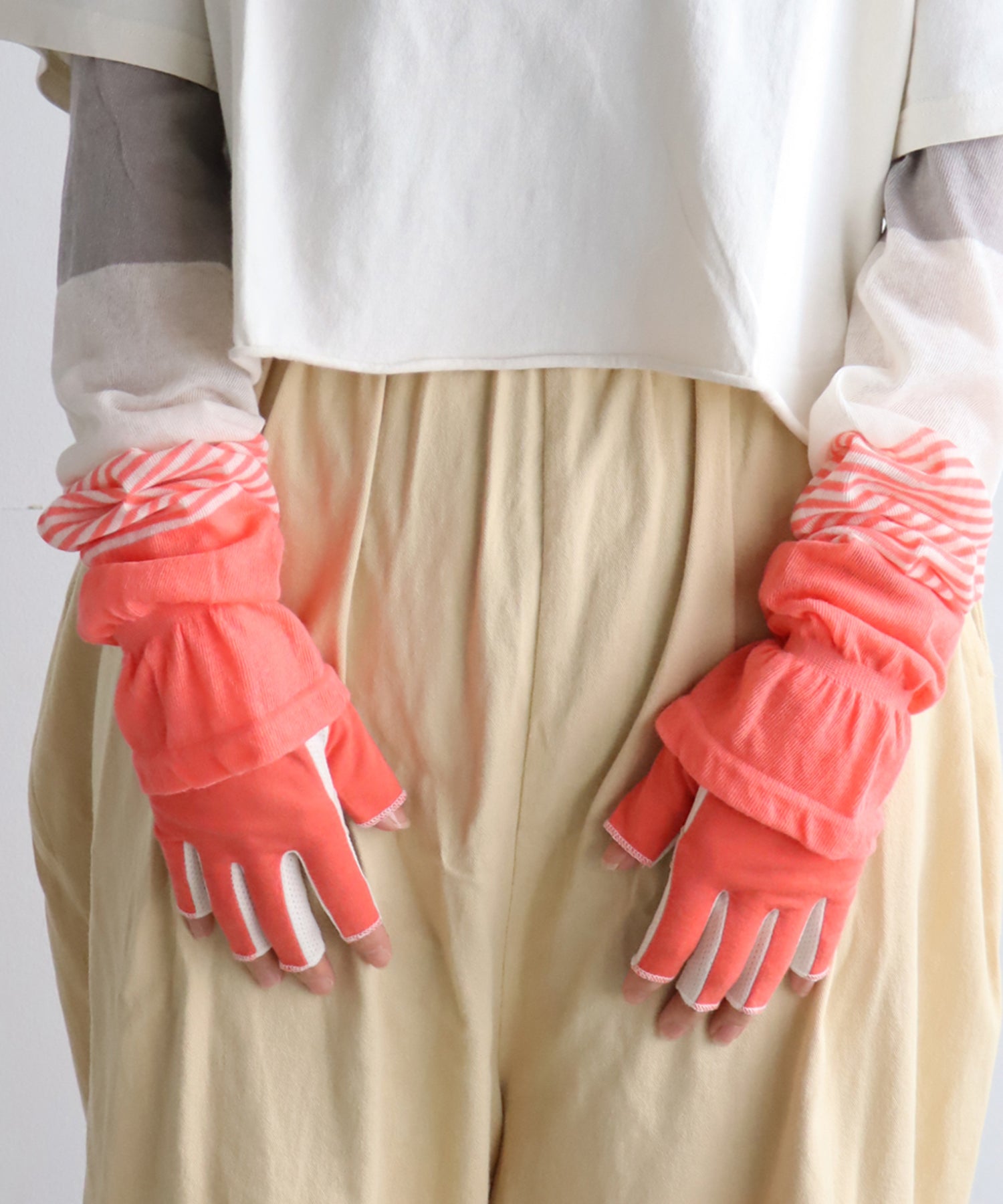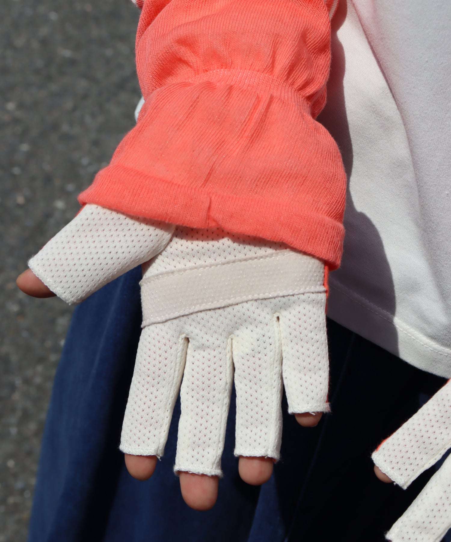 キュートなカラーが目をひく、指先カットのUVガード手袋。