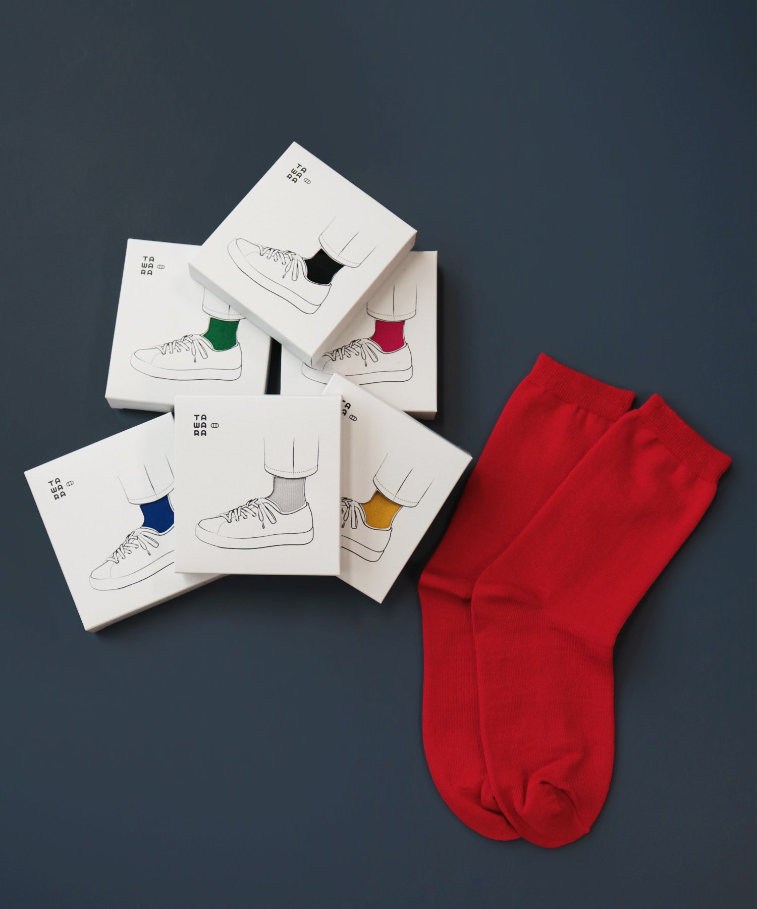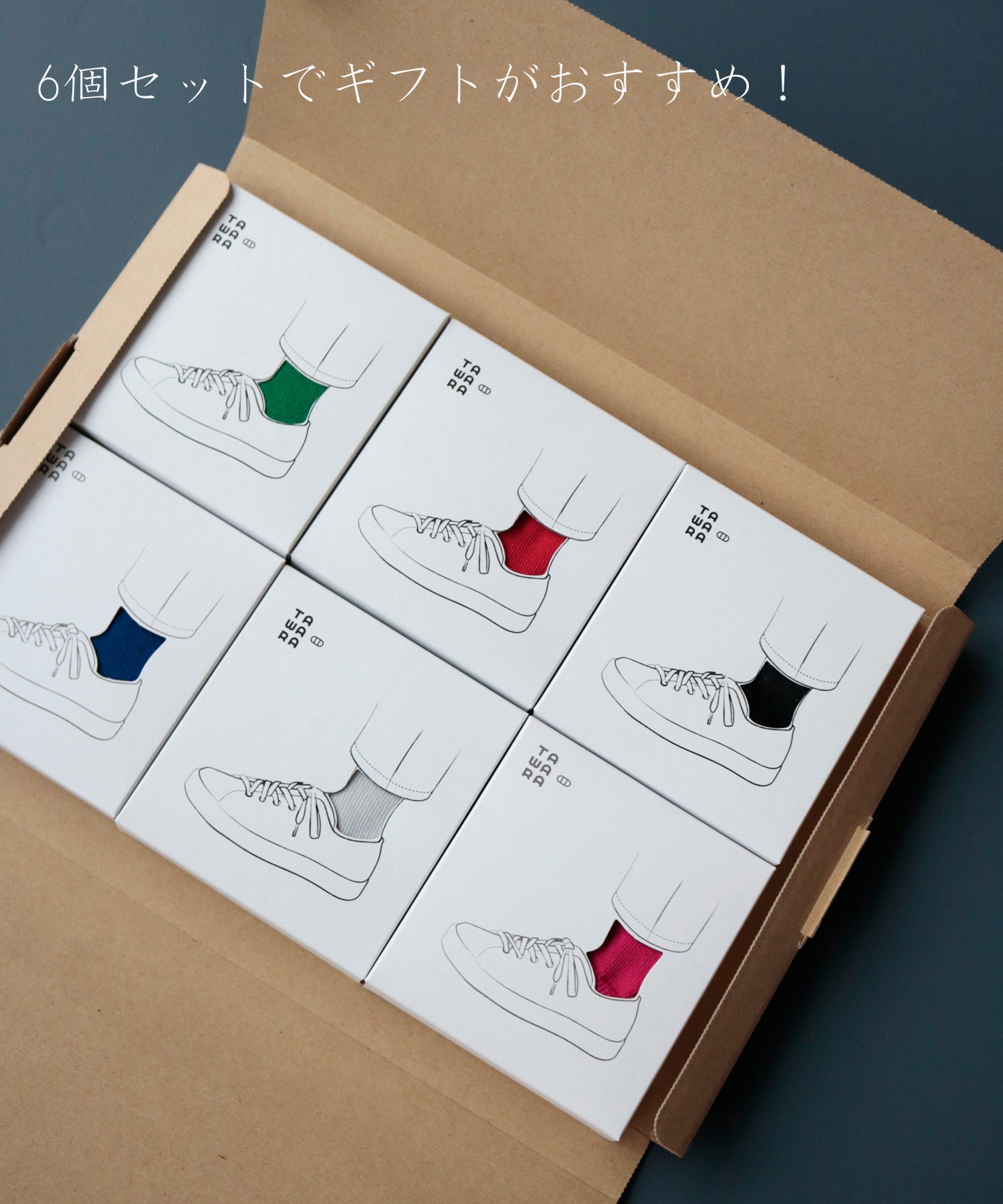 専用BOXに入ったのびのびユニセックスソックス